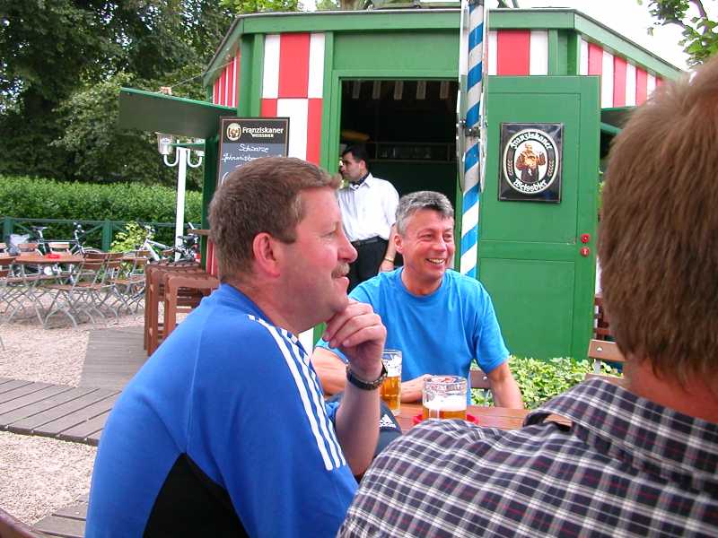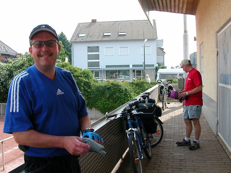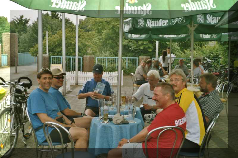 Ankunft um 19:00 Uhr nach 98 km am "Hotel Brücker" Duisburg - Walsum. Robert reicht den Begrüßungsschluck! |