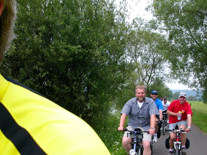 Hier um 12:09 Uhr geht es noch in loser "Kleiderordnung" dem ersten Biergarten entgegen. |