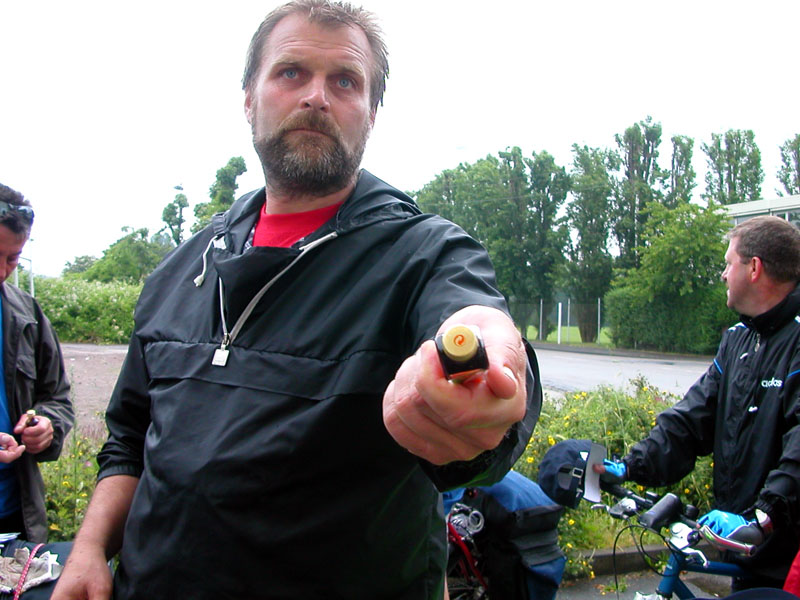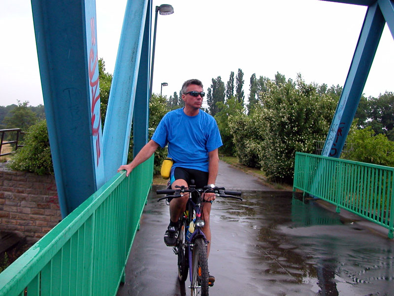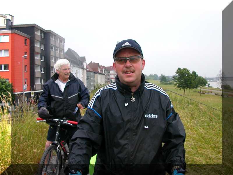 Vom Vereinsheim ging es Richtung Süden zum Kemnader See. Der Ruhr folgend über Bochum, Hattingen bis zum ersten Halt um 13:00 Uhr in Essen Steele. Willi fühlt sich wohl! Weil es so schön und "preiswert" war, haben wir auch direkt unsere erste Regenpause hier verbracht. |
