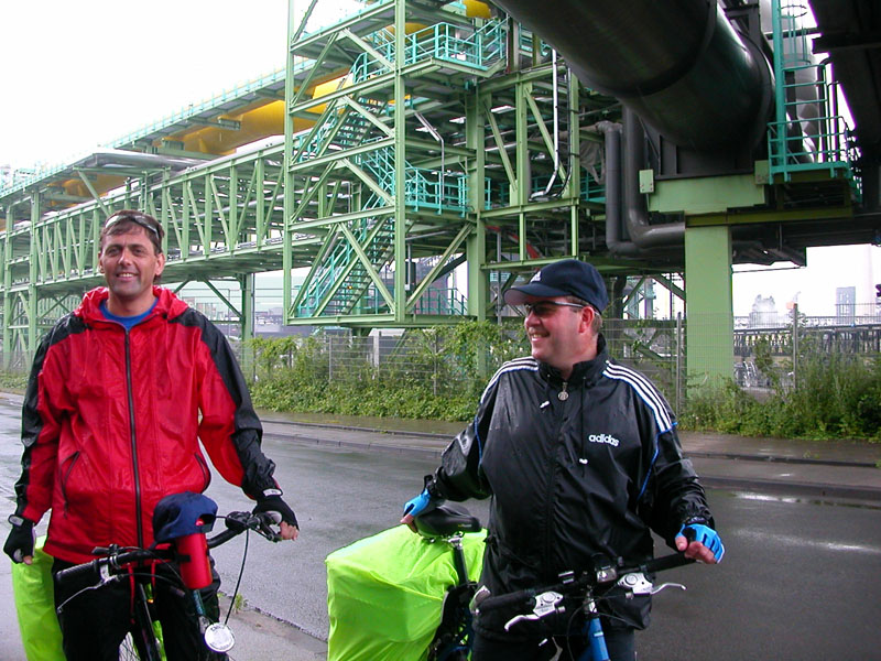 Im Industriegebiet Duisburg-Walsum um 18:35 Uhr. Werner und Willi freuen sich, daß sie bald im Hotel sind. |