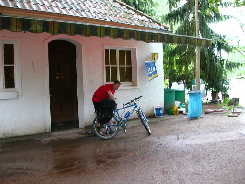19:30 Uhr. Diesmal hat es Werner erwischt. Natürlich regnet es! |
