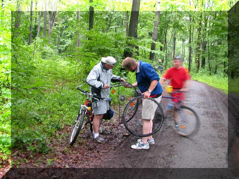 Um 09:30 Uhr bei bescheidenen Wetter werden die Räder startklar gemacht. Mutter Wehner war auch nicht so der Renner!