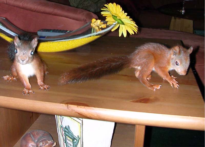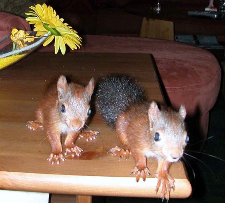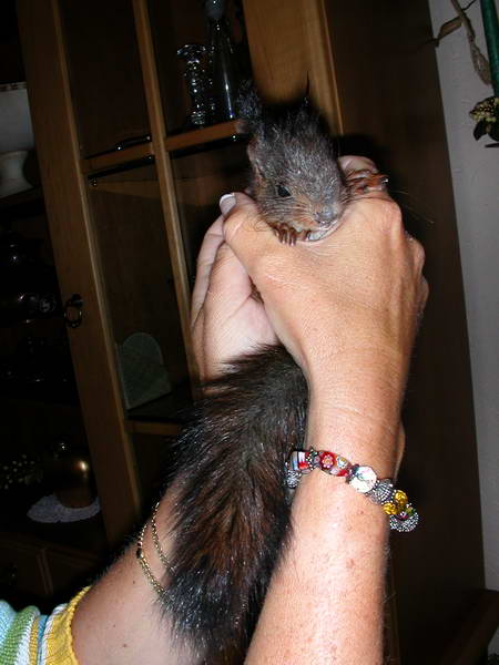 Zugang im August 2004 Am 10.August haben wir drei Eichhörnchen Baby's aufgenommen. Die kleinen wurden neben ihrer toten Mama gefunden.