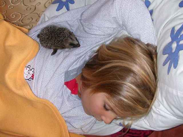 Kommt eine "Taube" geflogen! Am 27.09.04 hat unsere Tochter Juliane eine verletzte Taube mitgebracht. Zum Glück hat sie einen Ring, so das die Arche den Besitzer des Vogels ausfindig machen kann. @ @ @ Was hier auf meiner schlafenden Tochter liegt ist ein kleiner Blinder Igel. Er wurde am 1. September in einem Vorgarten gefunden, wo er hilflos umher irrte.