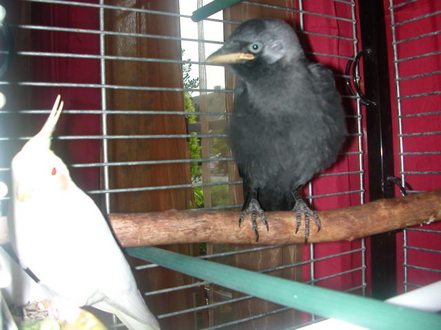 @ @ @ Die letzte Maiwoche entpuppte sich als Woche der Vögel. Zuerst hatte unsere Tochter Vogelkunde in der Schule, dann kamen sie life zu uns!! Zuerst "Nymphie" am 26.05.06 und dann am 28.05. "Rudi" der Rabe. Beide sind Passanten zugeflogen und die Arche90 hat sie dann zu uns gebracht.